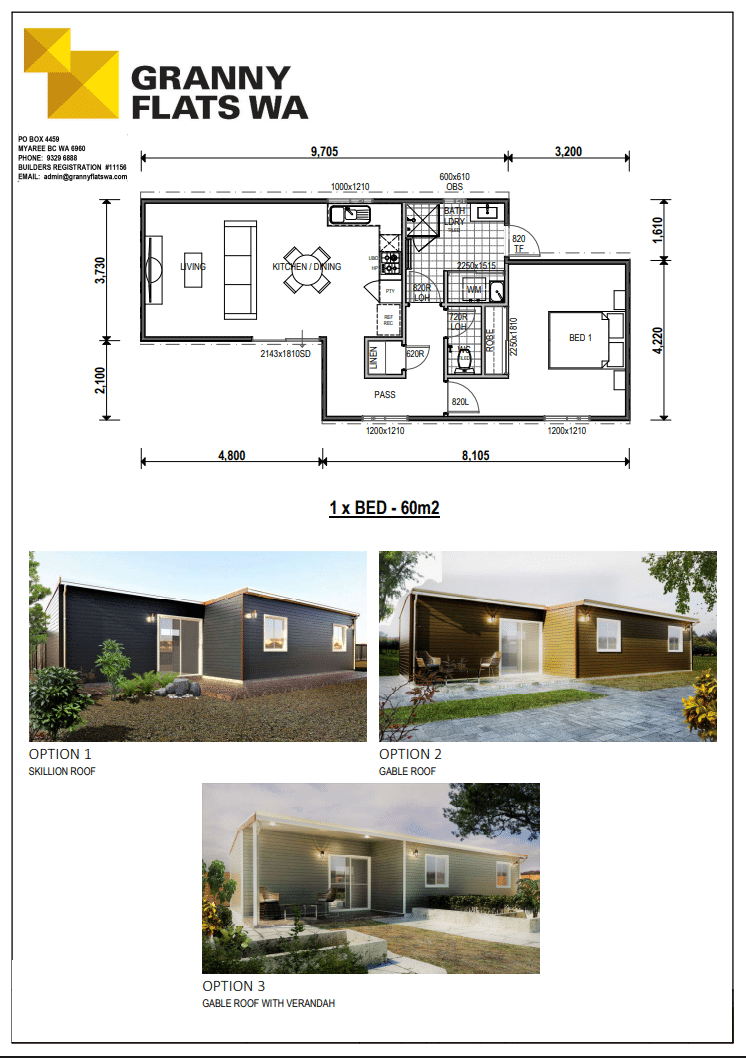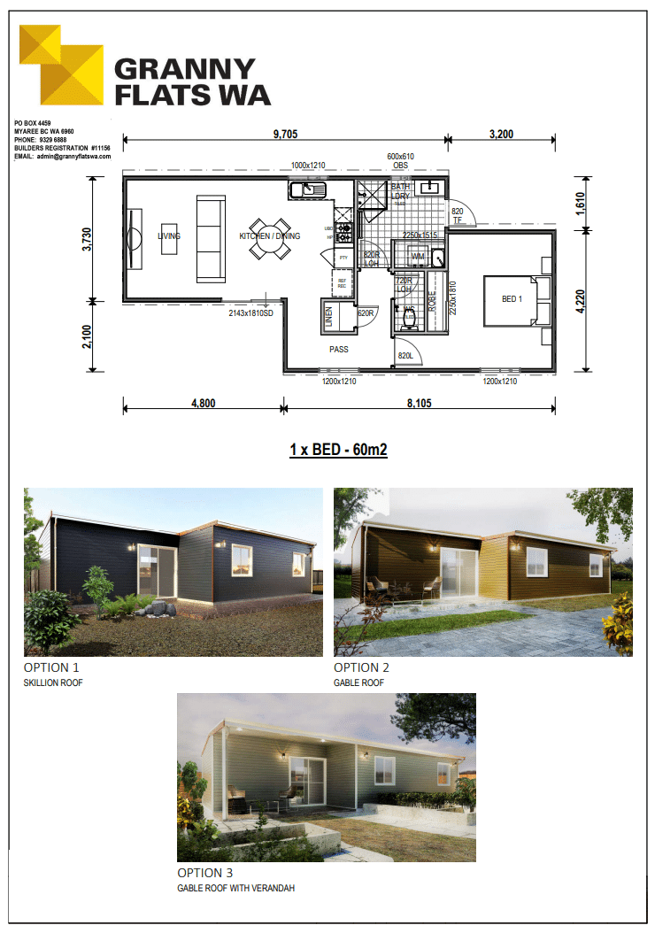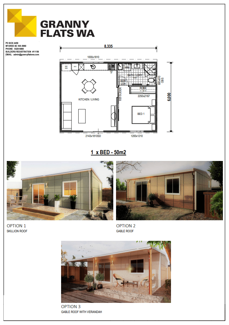 One-bedroom granny flats are an economical and versatile option. They are appealing since they are cheap to build and compact without feeling cramped. One-bedroom granny flats are excellent rentals that provide strong boosts to property value. Granny Flats WA provides a range of custom designs to use as a starting point for your granny flat build.