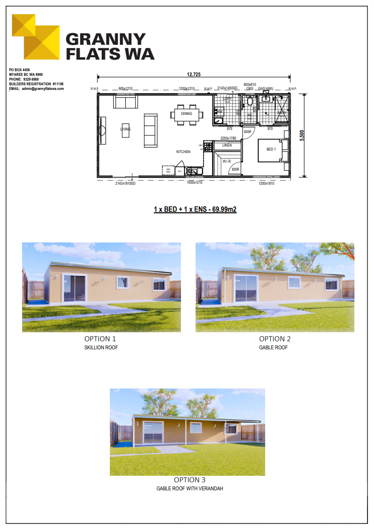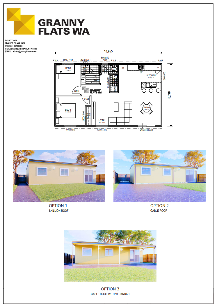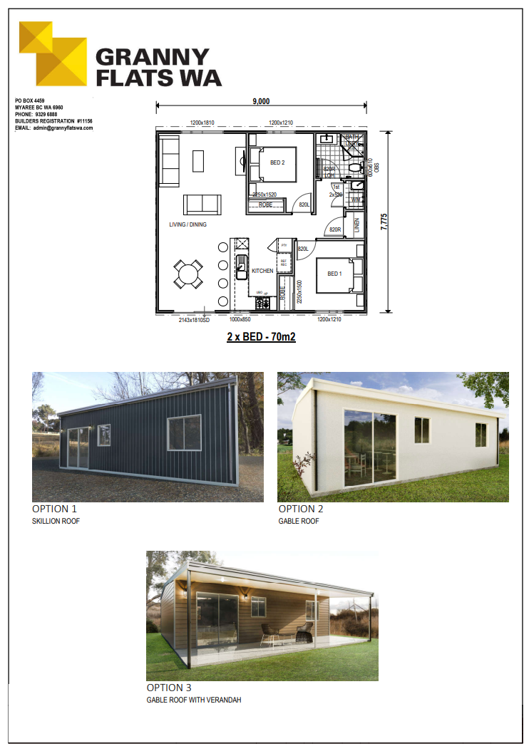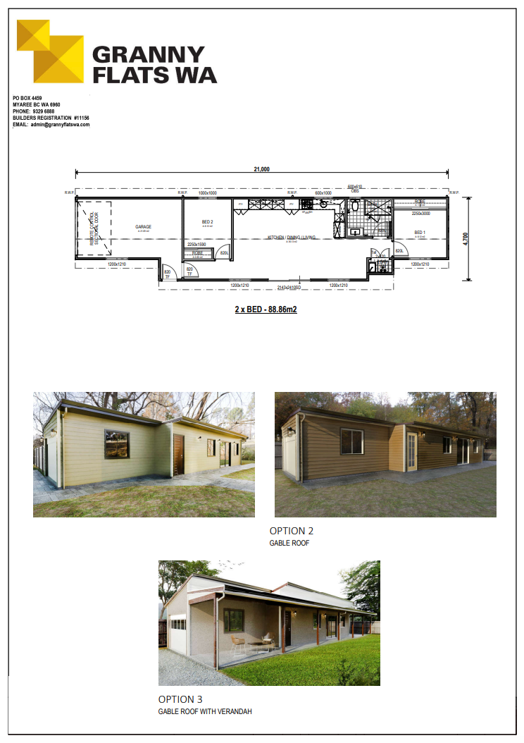Two-bedroom granny flats give residents a balance between space and flexibility. Because of their ability to accommodate a range of lifestyles, two-bedroom granny flats are a savvy investment. They provide a greater rental yield and a higher increase in property value than one-bedroom granny flats. You are free to choose from our range of designs or create your own with Granny Flats WA.